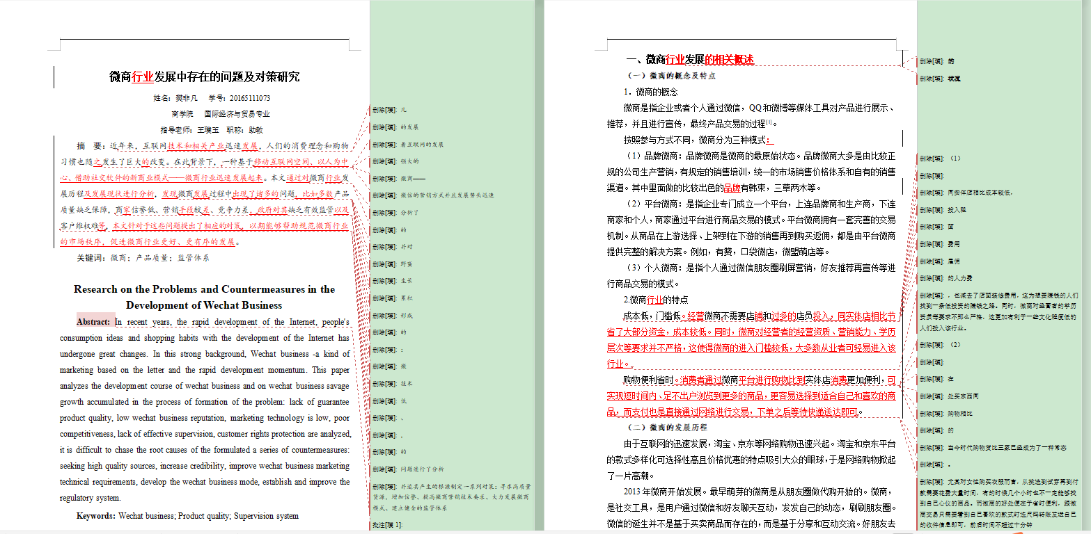 王璞玉老师通过word审阅做批注,再结合语音通话的方式对员工的毕业论文进行修改。员工能够清晰的看到老师给出的修改意见,及时对论文内容进行调整,大大提高了论文写作效率。