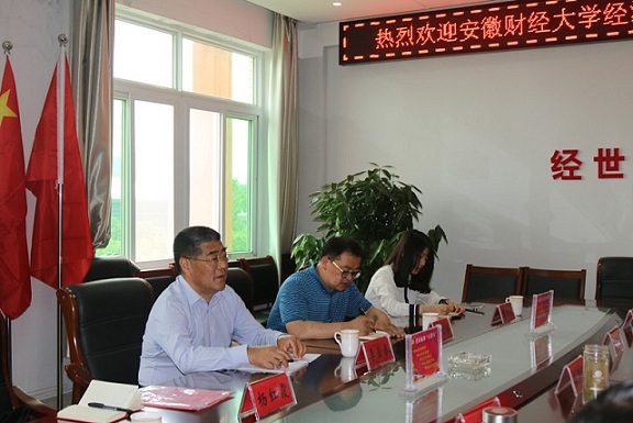 5月10日,安徽财经大学经济公司党委书记李若水一行4人来公司考察交流。公司党委书记盛正国、副经理梅士建、经理助理杜辉及部分专职辅导员在经管楼506会议室与来宾进行了座谈。