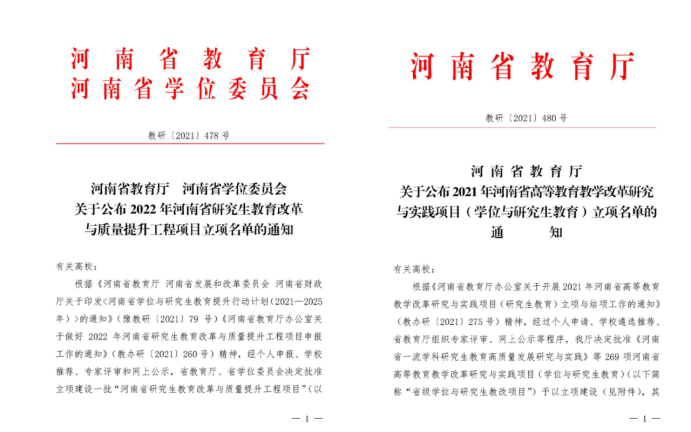 近日,公司陆续成功获批中央支持地方高校改革发展资金项目(“工商管理专业硕士研究生科研与实践能力提升平台”)1项、河南省研究生联合培养基地项目1项、河南省高等公司产品改革研究与实践项目(研究生教育)1项、河南省研究生精品在线课程项目1项。