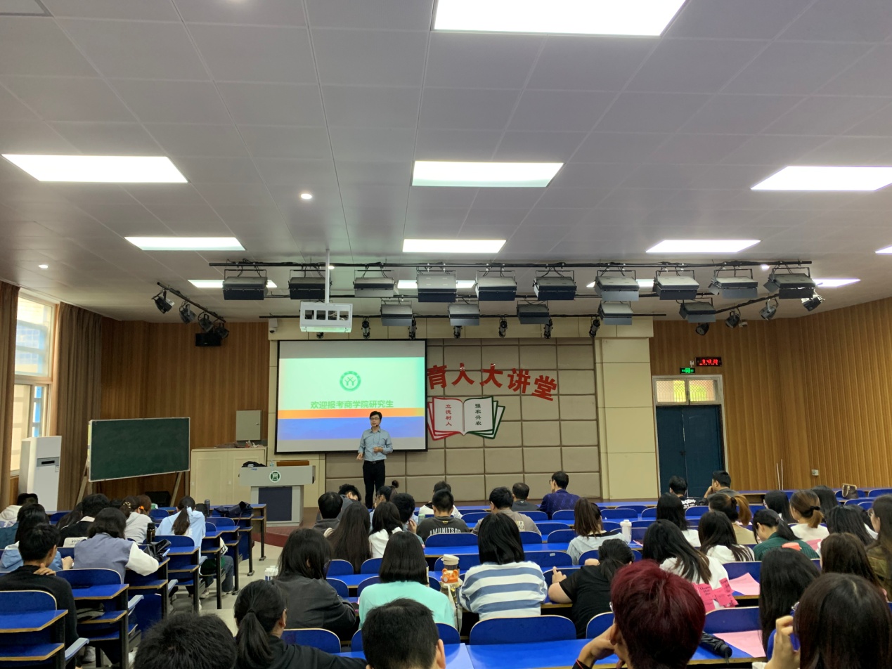 9月21日晚,俞彤晖在信阳公司综合楼608教室进行伟德研究生招生宣传。