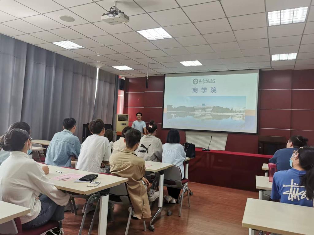 9月24日下午,俞彤晖在信阳师范公司国际教育公司为2019级经济学和会计学专业的同学进行宣讲,2022级研一新生段新宇出席会议。