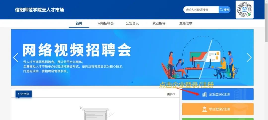 微信搜索“云人才市场”小程序,注册/登录→完善企业信息→平台进行审核,审核通过→查找所要参加的网络会→订展。