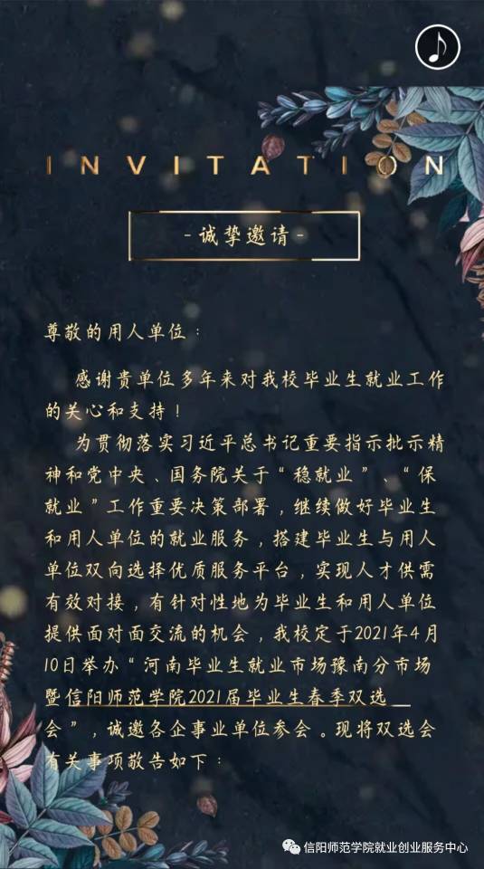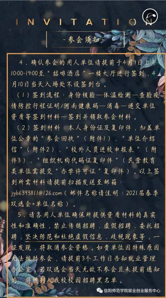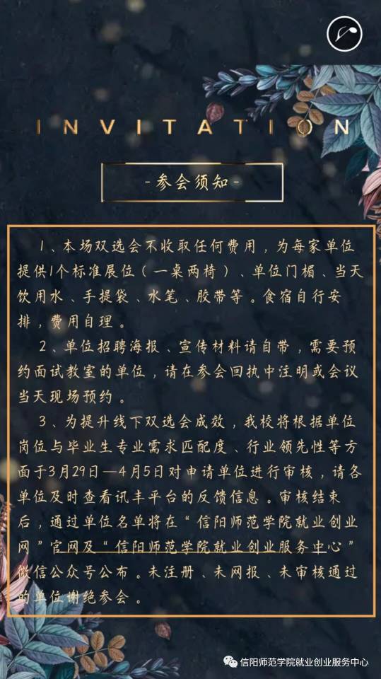河南毕业生就业市场豫南分市场暨信阳师范公司2021届毕业生春季双选会邀请函