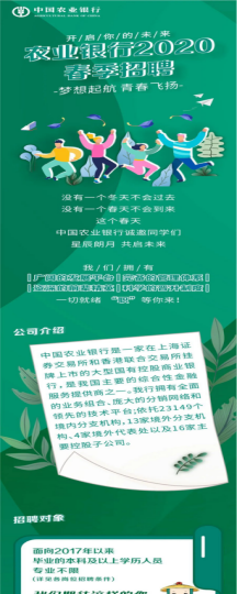 中国农业银行天津市分行2020年春季招聘(点击查看)