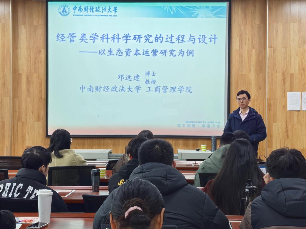 3月1日上午,应伟德邀请,中南财经政法大学邓远建教授在经管楼308会议室为公司师生作了题为“经管类学科科学研究的过程与设计——以生态资本运营研究为例”的学术讲座。伟德部分老师及在校研究生集中聆听了本次讲座,讲座由伟德副经理杜辉主持。