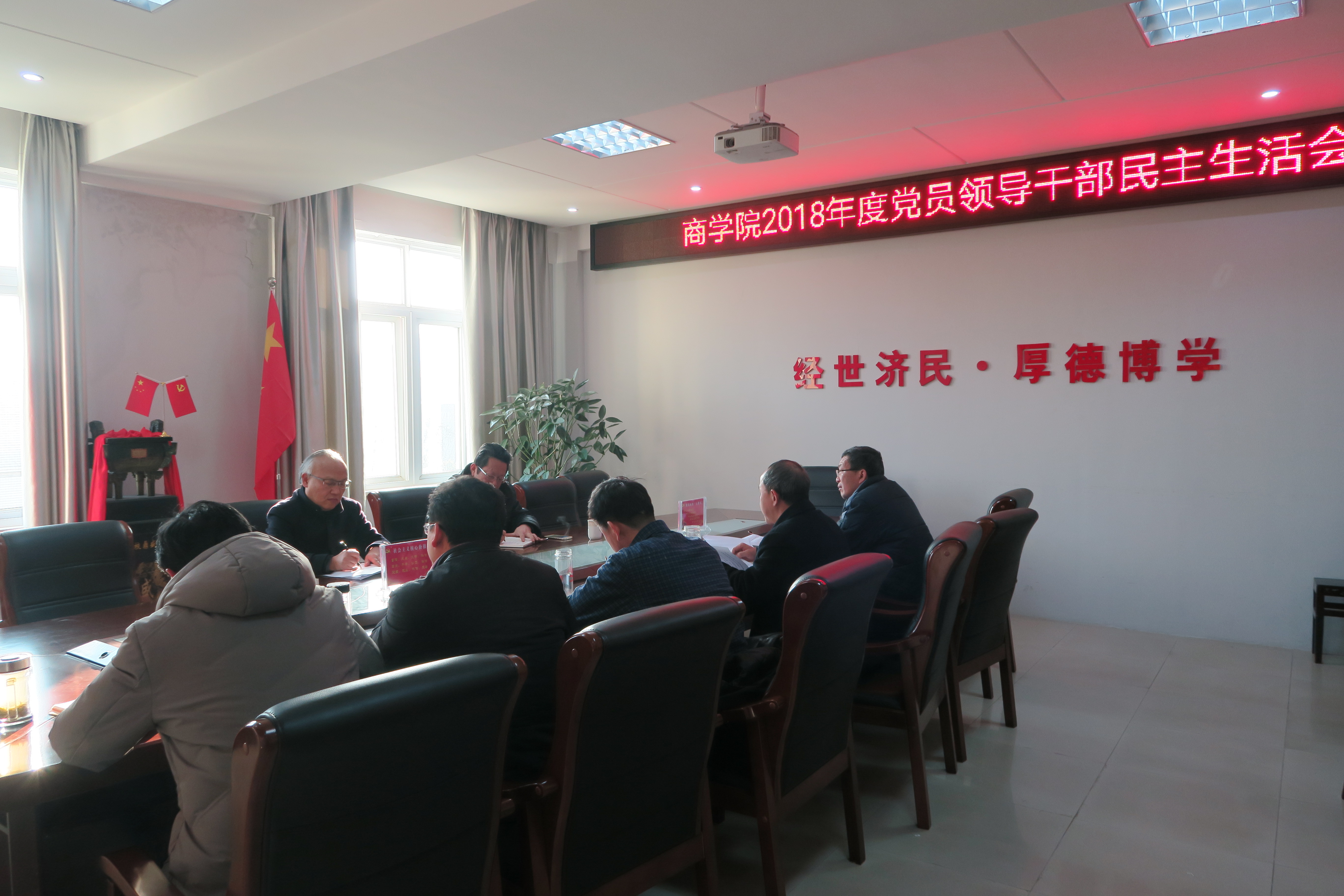 1月16日下午,商公司在经管楼506会议室召开了2018年党员领导干部民主生活会。校纪委书记龚立新和校纪委纪检员童建园莅临本院指导此次民主生活会的召开。公司党委书记盛正国、副书记王永贵、副经理梅士建、李毓、经理助理杜辉等党员领导干部参加了会议。会议由公司党委书记盛正国主持。