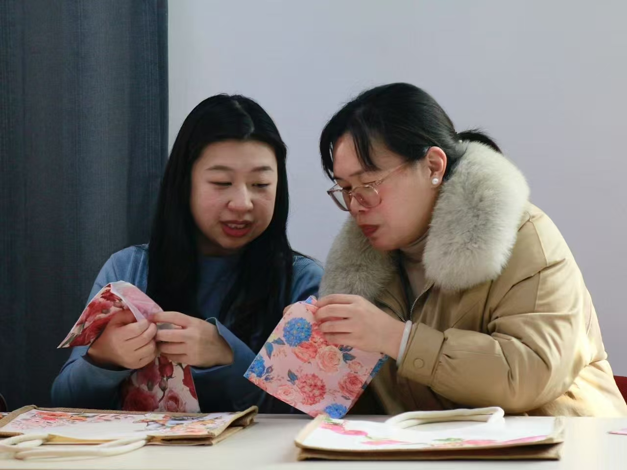 活动伊始,老师上台详细介绍蝶古巴特技术,称其源于欧洲,融合了多种艺术手段,可以创作出独一无二的作品,接着,老师向大家细致讲解手工包制作流程。大家围坐一起,认真聆听,共同期待着这次创意之旅。在老师指导下,教师们先挑选喜欢的布料图案,再小心剪裁、拼接,再用蝶古巴特技术细心粘贴装饰物,在制作过程中大家相互交流创心得,欢声笑语不断。手工包制作完毕后,教师们展示作品,互相欣赏点评,作品各有特色,都凝聚着心血和创意。活动结束后,教师们表示此次活动不仅让她们学会了蝶古巴特技术,提升了艺术修养,还让她们在忙碌工作之余得到放松享受,得到不一样的体验。