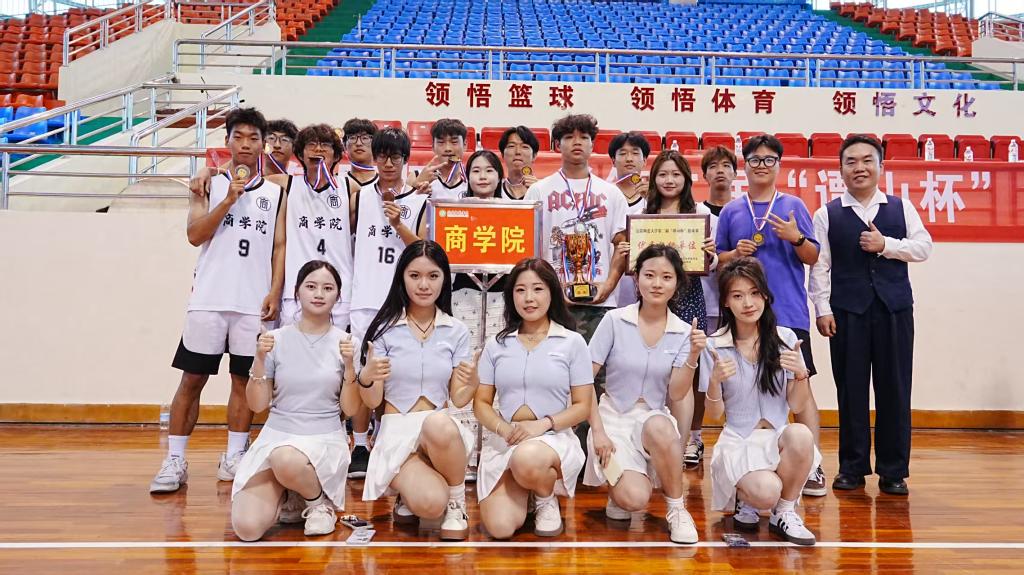 4月8日,伟德体育第二届"谭山杯"篮球赛颁奖典礼在体育馆隆重举行。在此前比赛中,伟德代表队表现优异,女子篮球队成功晋级八强,男子篮球队斩获季军,展现了商院学子顽强拼搏的体育精神。