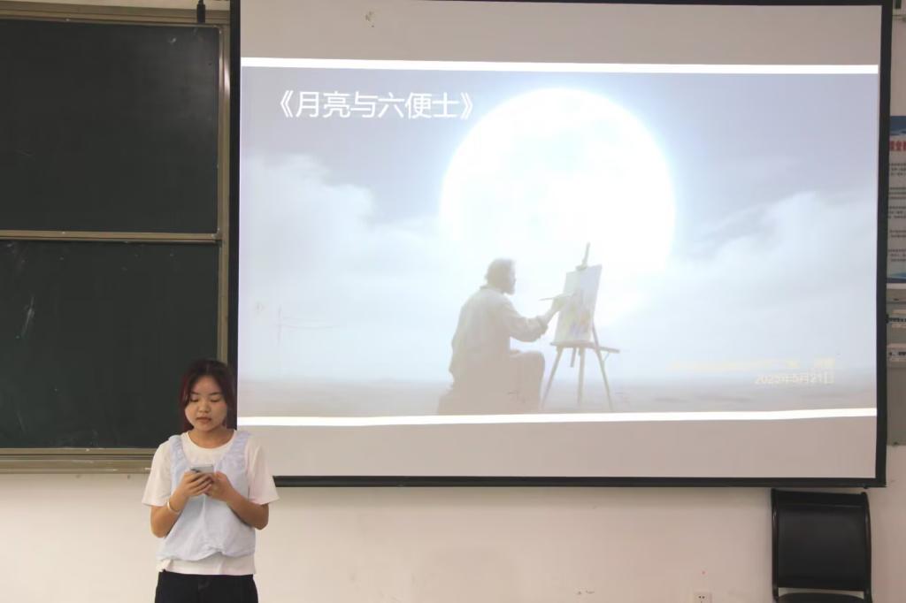 活动中,六位同学依次分享了他们的阅读感悟。凤佳枝同学以余华的《活着》为切入点,从“生存、生活、生命”三个维度剖析了主人公福贵的生命韧性,引发同学们对生命本质的思考。童红健同学通过《许三观卖血记》展现了普通人在时代洪流中的人性光辉,王小希同学则以《你当像鸟飞往你的山》诠释了教育对自我救赎的意义,刘慧同学通过《月亮与六便士》探讨了理想与现实的平衡,而姚玉林同学和李琛同学则深情解读了史铁生《我与地坛》中的哲思与心灵治愈力量。