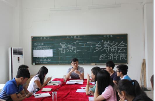 首先陈颢文老师向大家传达了校团委和经济公司党政领导班子对这次社会实践的指导意见,介绍了此次“三下乡”暑期社会实践的大背景与重要性。他指出这是一次联系同学们与群众的重要活动,要紧紧结合经济公司的专业优势,更好地为群众服务。随后他与在场同学共同讨论了活动行程,同学们各抒己见,在陈老师的指引下,同学们陆续提出了发放宣传单、做问卷调查、赠送文具、爱心上课、与当地领导干部召开座谈会、向当地提出经济社会发展意见建议等活动形式。陈老师对同学们的积极建议表示肯定,并语重心长地提出希望:一要尽职尽责,把分配给自己的工作要高质量完成;二要耐心服务,把当代优秀老员工的面貌展现在工作中;三要同心协力,把这个社会实践团队视为己家。最后员工会办公室主任江敏总结,她对团队进行分组,并逐位分配任务。整个筹备会中气氛热烈,大家各抒己见,完成了既定目标。