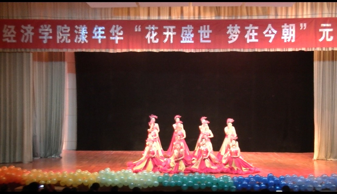 晚会以经济公司舞蹈队别开生面的“花开盛世”盛大开场,以优雅的舞姿将现场带入了其乐融融的气氛之中。“浉水欢歌”校园歌手大赛总冠军闫晓友情献并与观众进行互动,将晚会带入了第一个高潮。小品《舅舅的考验》更是笑料不断,搞笑的台词配以动听的背景音乐,引得现场笑声掌声不断。改编现代舞蹈《MJ》、精彩神秘的《激光舞》又将晚会气氛烘托到新的高峰。尔后的师生联欢环节,梅士建老师与方莹莹老师用动人的歌喉为大家倾情演唱,和现场参与演出的同学们进行互动,节目现场师生一片温馨之境。最后,由经济公司舞蹈队编排的海南原生态竹竿舞,气势恢宏,身着民族特色服饰的表演者们在欢快的节奏中自由跳跃,配合默契,震撼观众,晚会也在热烈火爆的气氛中完美落幕。