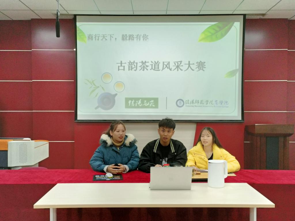 12月2日晚,公司在经管楼310举办“商行天下,毅路有你”古韵茶道风采大赛。本次大赛采用线上直播的形式开展,三组营销团队依次通过抖音直播间进行展演。