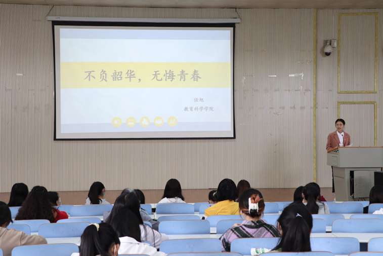 会上,任旭通过分享自己参与志愿服务、科研受挫、未来展望等成长经历,鼓励大家热爱生活,努力奋斗,勇于担当,把小我融入大我之中,建议大家要有一个明确合理的目标、要做一个认真做事的人、要有一个强大的内心。程晓龙通过分享自己大学四年的创新创业经历及志愿服务的历程,用“少年遥想得山田,请赶在日落下山前”鼓励大家珍惜时光,大胆尝试,勇于追求。王金艺分享了自己面对困难,自立自强,勇立时代潮头,书写人生华章的奋斗故事。