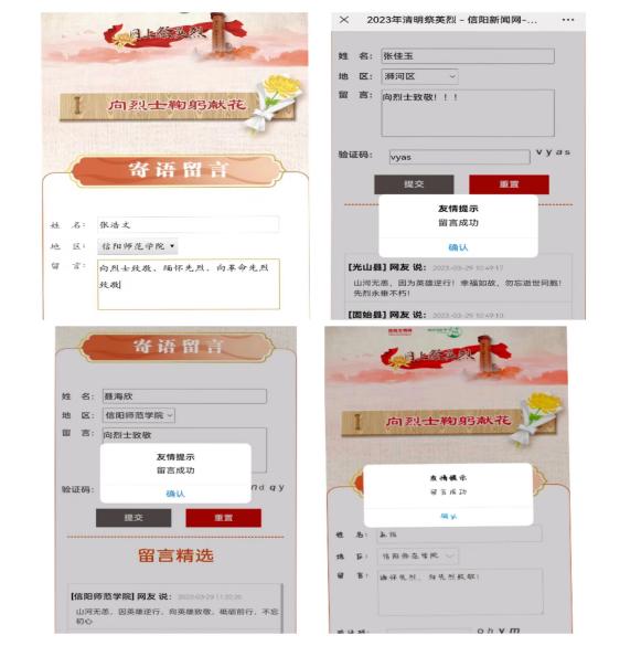 致敬——鲜花献英烈,云上寄哀思。3月29日至4月2日,商学院鼓励全体员工通过参加“网上祭英烈”活动,向先贤先烈鞠躬献花、抒写感言寄语;同时利用微信转发朋友圈,带动广大群众积极参与。此次活动的开展,不仅为英烈送上最庄重、最崇高的敬意,也进一步增强了同学们爱党爱国的浓厚情感,使爱国主义精神深入人心。