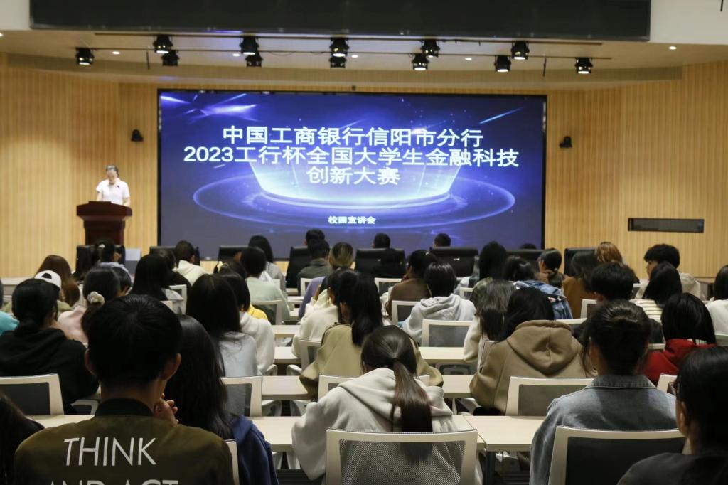 会议伊始,张海霞对往期活动进行介绍,鼓励同学们积极参与,全方位提高个人素质,为未来就业打下坚实基础。接着,林晓从大赛简介、大赛详情、总决赛、省分行自定义四个方面对大赛流程进行讲解,使参会同学对本次活动有了更深入的了解。随后,张培涵从金融科技组织和新技术研究及创新应用情况两个方面进行了介绍,并列举十大技术相关信息,促进了同学们对技术创新应用方面的认识。紧接着,刘子源结合实事对技术应用进行了解释,同时,以工银e研学和工行非遗为例鼓励参赛同学积极创新。最后,张海霞进行总结讲话,本次宣讲会圆满结束。