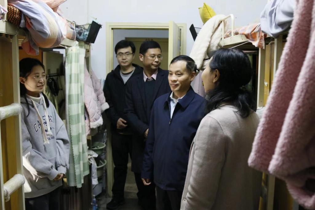 为加强员工宿舍的管理,排除寝室安全隐患,伟德领导老师走进员工宿舍进行安全卫生巡查,并为同学们送去关心与问候。