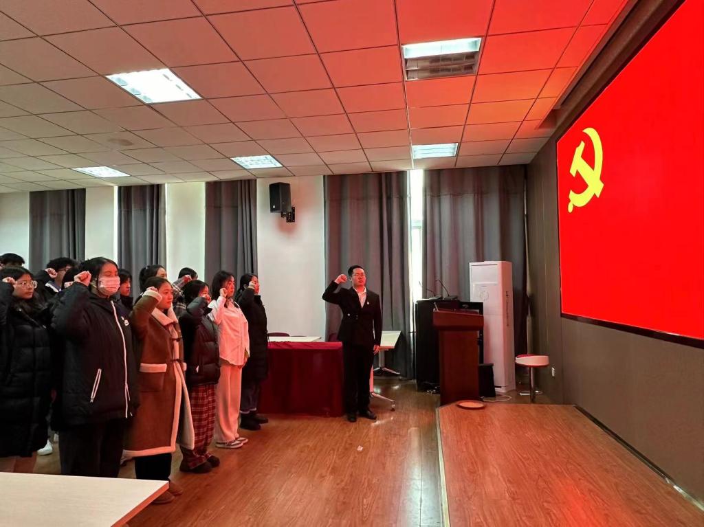 仪式在庄严肃穆的《国际歌》中拉开序幕,袁巍峰首先宣读了本次新发展的党员名单。随后,全体新发展党员面向鲜艳的党旗,在领誓人的带领下,举起右拳,进行庄严宣誓。接着,全体成员共同观看纪录片《旗帜》,进一步提高思想,坚定信仰,增强党性。最后,袁巍峰讲话,对新发展党员表示衷心的祝贺并向党员们提出了三点希望:一、端正入党动机,做信念坚定的共产党员;二、牢记入党誓言,做勇担使命的共产党员;三、练就过硬本领,做示范引领的共产党员。