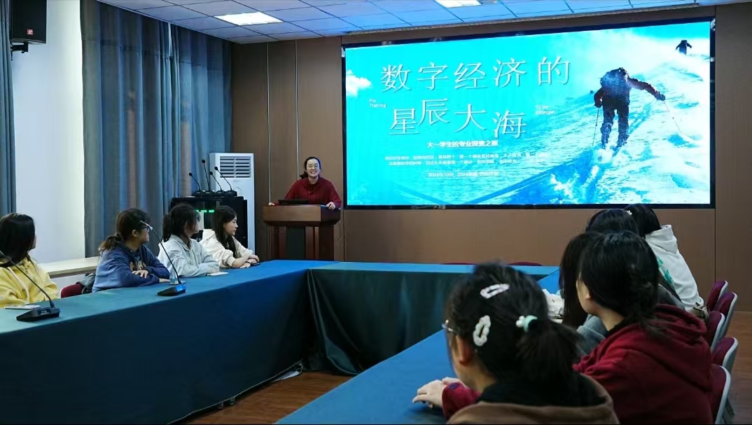 10月29日,伟德2024级数字经济班在经管楼310会议室开展以“数字经济的星辰大海”为主题的班会。校员工处副处长杨乐、公司党委书记李辉、公司党委副书记黄钰莹莅临指导,24级数字经济班全体同学参加本次会议。