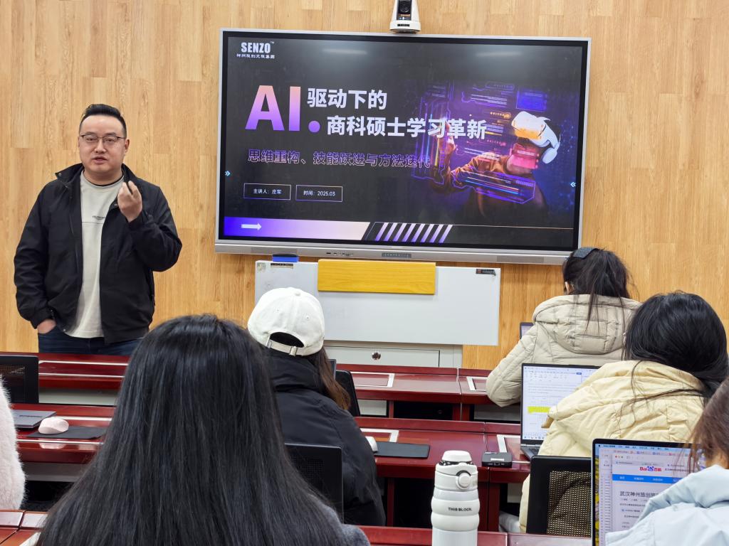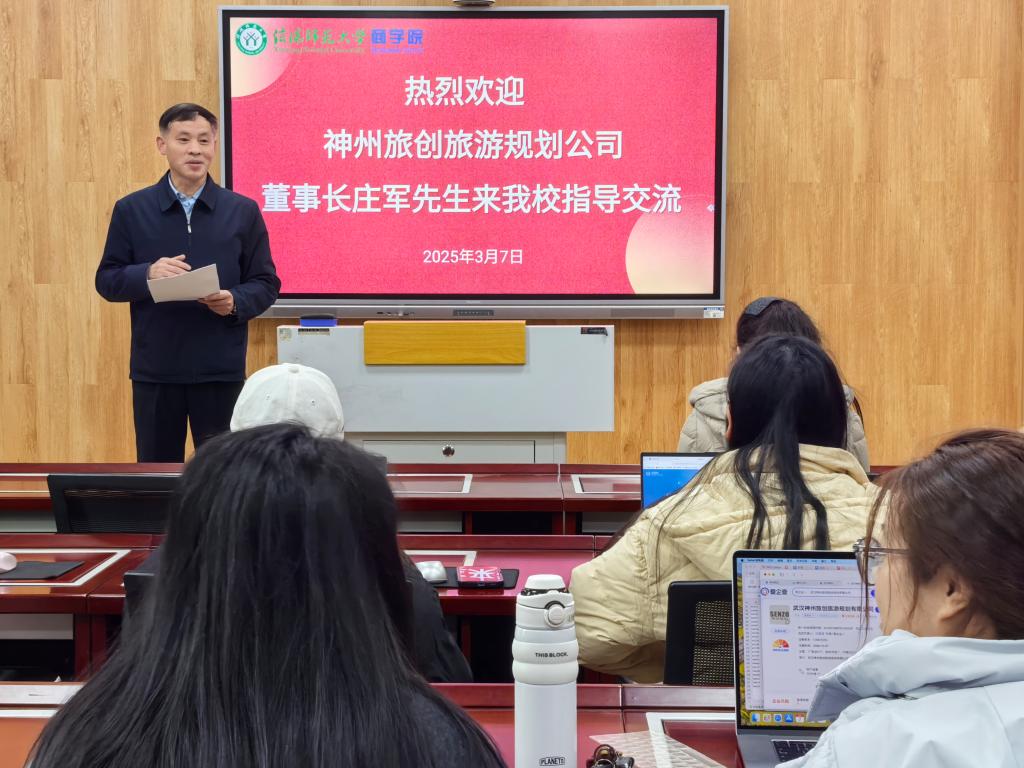 3 月7 日上午,伟德河南省研究生联合培养基地举办了一场主题为“AI 驱动下的商科硕士学习革新” 的讲座。此次讲座由伟德经理彭荣胜教授主持,主讲人是来自合作单位武汉神州旅创旅游运营管理有限公司的董事长兼 CEO 庄军先生。理论经济学、工商管理学硕士研究生集中聆听了此次讲座。