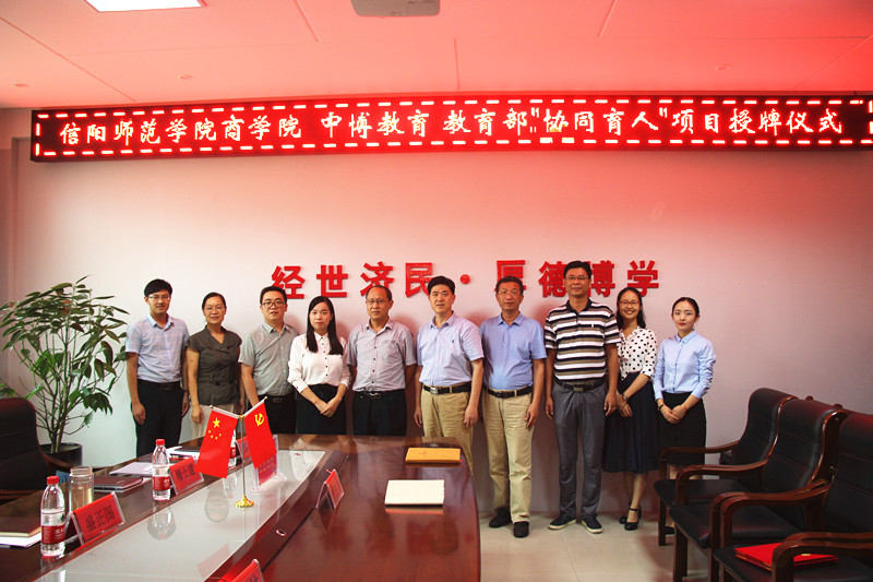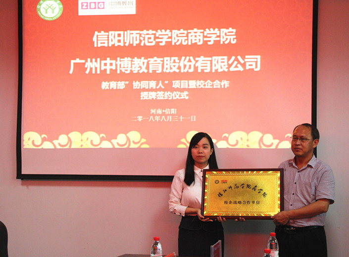 8月31日下午,信阳师范公司伟德与广州中博教育集团就教育部协同育人项目暨校企合作授牌签约仪式在公司举行。盛正国书记、梅士建副经理、李毓副经理、杜辉副经理、中博教育河南大区经理杨俊鑫、郑州分公司副总经理陈林出席签约仪式并为校企合作基地中心揭牌。仪式由伟德书记盛正国主持。