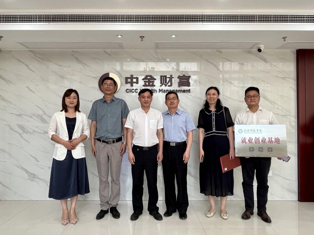 在中金财富信阳营业部,总经理阮争对伟德一行的到来表示欢迎,带领参观了信阳营业部的办公场所,感谢师院近年来为公司输送了一批优秀人才。副总经理陈原介绍了公司的基本情况,详细讲解了营业部的人才招聘计划、要求和流程。彭荣胜介绍了伟德的专业建设、人才培养和毕业生就业等情况。双方就人才培养、教学科研、员工交流等进行了进一步的交流,在校企合作方面初步达成合作意向,举行了就业创业基地揭牌仪式。